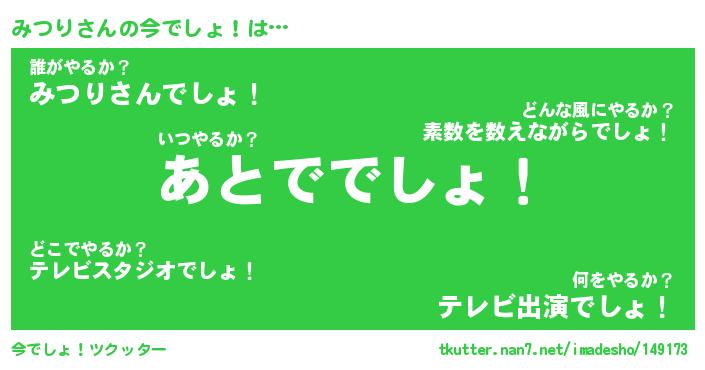 | ヘコむあだ名 | 『みつもー』『つくし』『みつ太郎』 |