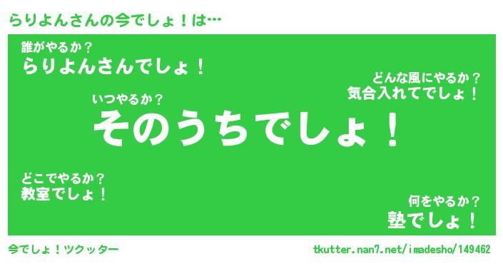| 意味不明あだ名 | 『ペロリンらりよん』『永久保存らりよん』 |