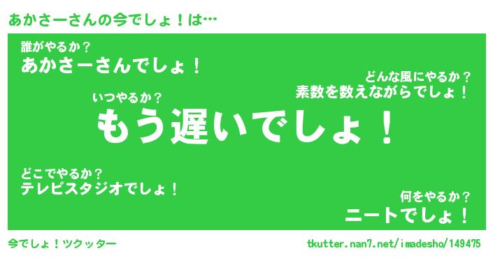 | 意味不明あだ名 | 『ペロリンあかさー』『永久保存あかさー』 |
