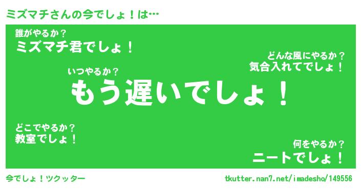 | 肩書あだ名 | 『ミズマチ店長』『ミズマチ総理大臣』 |