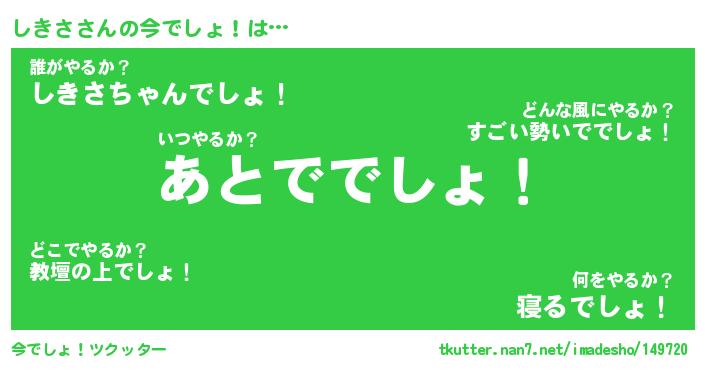 | 意味不明あだ名 | 『ペロリンしきさ』『しきさフォーエバー』 |