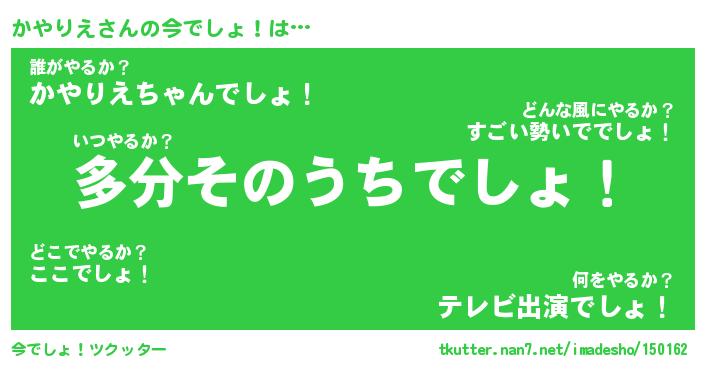 | 意味不明あだ名 | 『ペロリンかやりえ』『永久保存かやりえ』 |