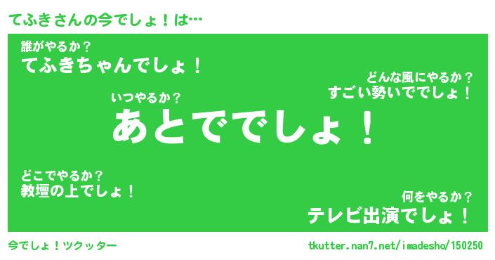 | 欧米人風あだ名 | 『マイケルてふき』『てふきクリステル』 |