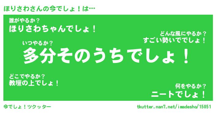 | 意味不明あだ名 | 『ペロリンほりさわ』『永久保存ほりさわ』 |