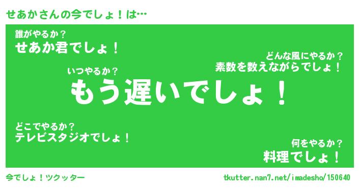 | 伝説のあだ名 | 『伝説のスナイパーせあか』 |