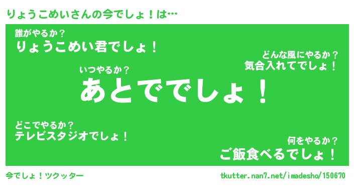 | ヘコむあだ名 | 『りょにー』『なまこ酢』『りょを』 |