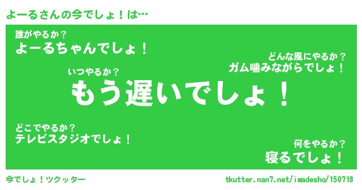 | 意味不明あだ名 | 『ペロリンよーる』『よーるフォーエバー』 |