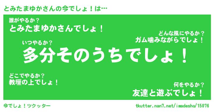 | 恥ずかしいあだ名 | 『プリティーとみたまゆか』『とみっちょ』 |