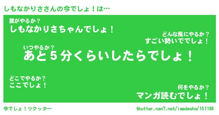 | ツイッター | しもなかりささんのツイッターID『dendenmushi_idle』 |