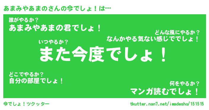 | 胡散臭い通販商品みたいなあだ名 | 『億万長者になれるブレスレット…その名も「あまみやあまの」』 |