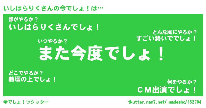 | ヘコむあだ名 | 『いしふぇ~』『牛乳』『いしっ子』 |
