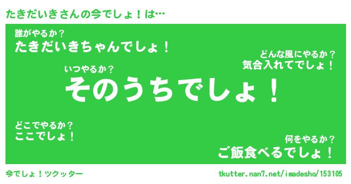 | 肩書あだ名 | 『たきだいき店長』『たきだいき国家主席』 |