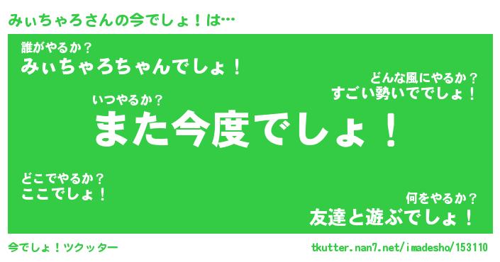 | ファンタジー風あだ名 | 『ミィフェル』『エターナルミィチャロー』 |