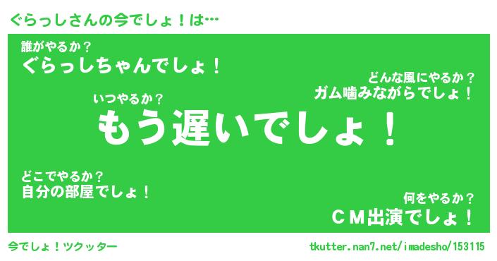 | 意味不明あだ名 | 『ペロリンぐらっし』『永久保存ぐらっし』 |