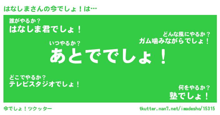 | 意味不明あだ名 | 『ペロリンはなしま』『永久保存はなしま』 |