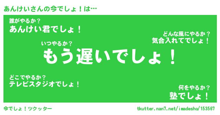 | 意味不明あだ名 | 『ペロリンあんけい』『永久保存あんけい』 |