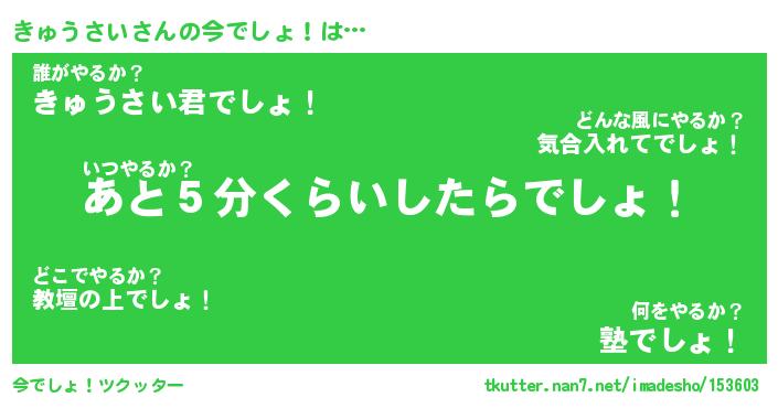 | ヒーロー風カッコイイあだ名 | 『スーパーキュウサイ』『幻影騎士キュ』 |