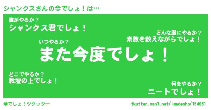 | ツイッター | シャンクスさんのツイッターID『fukuyoka_man』 |