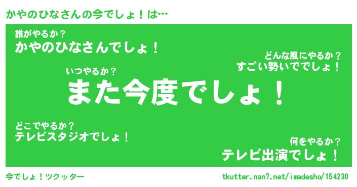 | 恥ずかしいあだ名 | 『プリティーかやのひな』『かやっちょ』 |