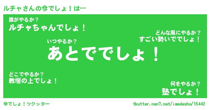 | ヘコむあだ名 | 『ルチもー』『酢こんぶ』『ルチっぺ』 |
