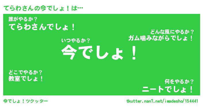 | 伝説のあだ名 | 『伝説のスナイパーてらわ』 |