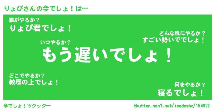 | ヘコむあだ名 | 『りょもー』『なまこ酢』『りょっぺ』 |