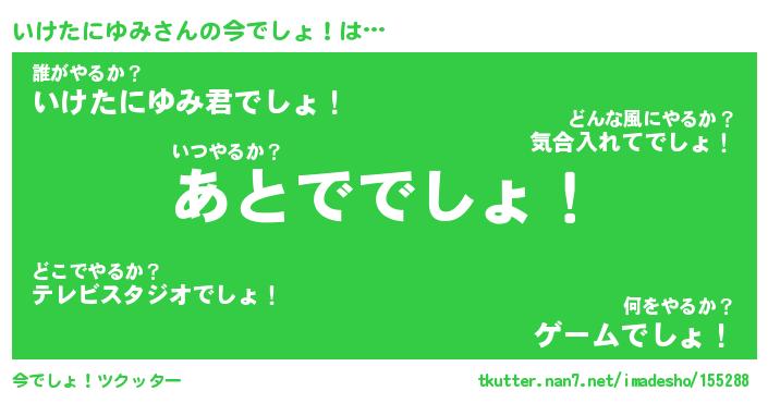 | 恥ずかしいあだ名 | 『プリティーいけたにゆみ』『いけっちょ』 |