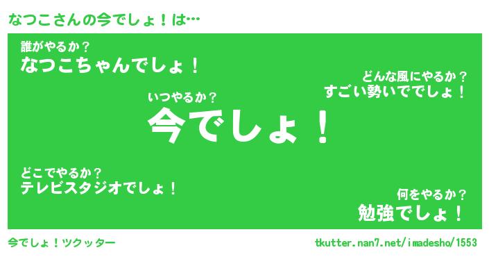| 伝説のあだ名 | 『伝説のスナイパーなつこ』 |