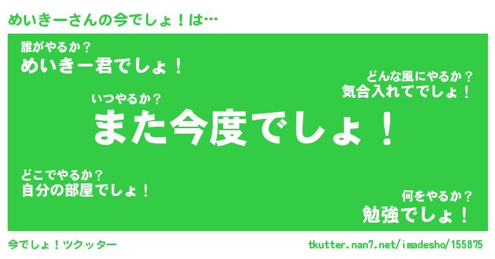 | ヘコむあだ名 | 『めいもー』『豆乳』『めいっぺ』 |