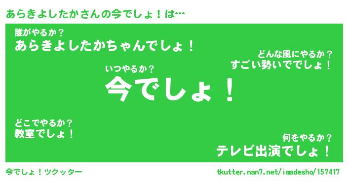 | 恥ずかしいあだ名 | 『プリティーあらきよしたか』『あらちん』 |
