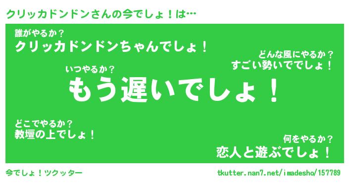 | 男性向けラノベタイトル風あだ名 | 『クリッカドンドンの憂鬱』 |