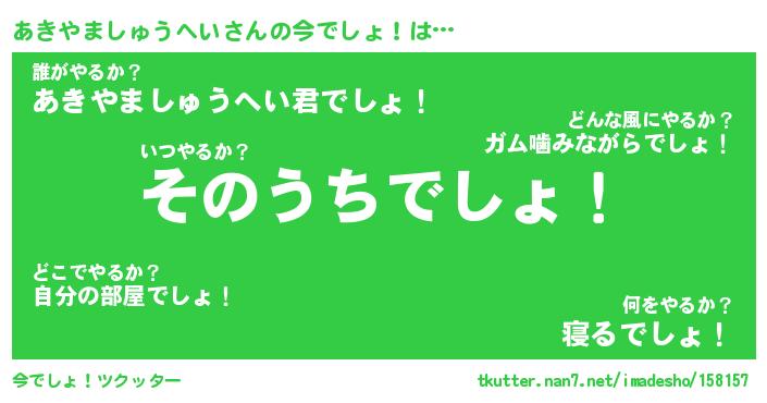 | 伝説のあだ名 | 『伝説のスナイパーあきやましゅうへい』 |