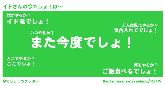 | ヘコむあだ名 | 『イドふぇ~』『なまこ酢』『イドを』 |