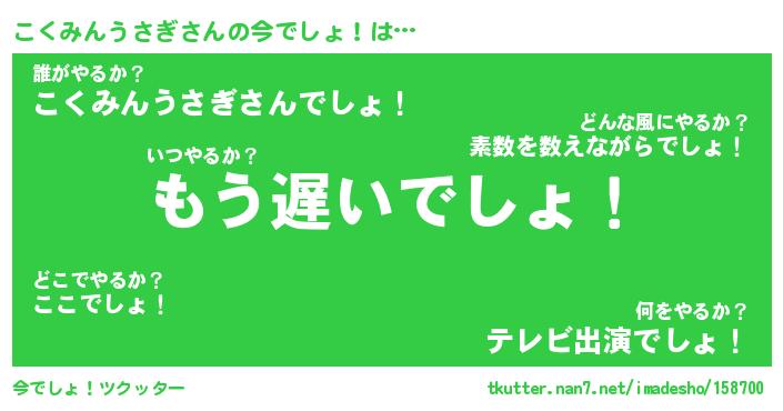 | ヒーロー風カッコイイあだ名 | 『スーパーコクミンウサギ』 |