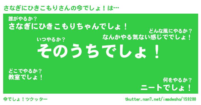 | 男性向けラノベタイトル風あだ名 | 『さなぎにひきこもりの憂鬱』 |