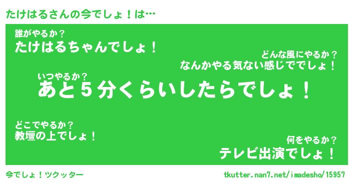 | ヘコむあだ名 | 『たけにゅー』『酢こんぶ』 |