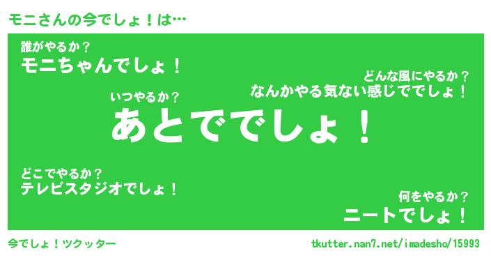 | ヘコむあだ名 | 『モニっふぃ~』『酢こんぶ』 |