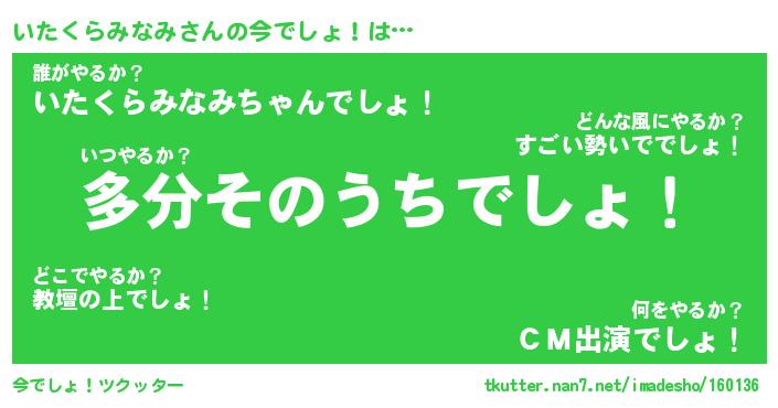 | 恥ずかしいあだ名 | 『プリティーいたくらみなみ』『いたちん』 |
