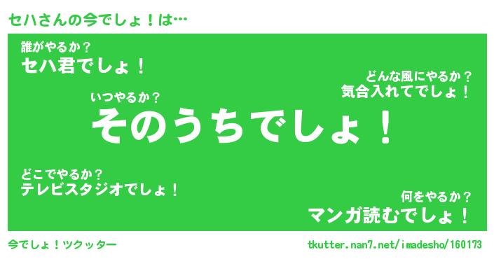| 男性向けラノベタイトル風あだ名 | 『セハの憂鬱』『ノーゲーム・ノーセハ』 |