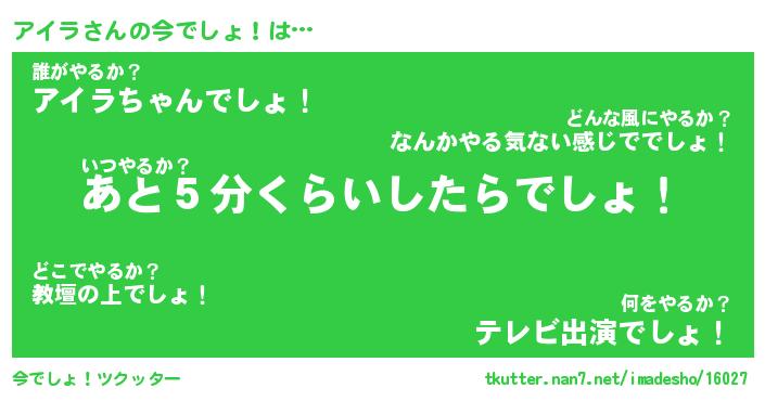 | ヒーロー風カッコイイあだ名 | 『スーパーアイラ』『ウルトラアイラマン』 |