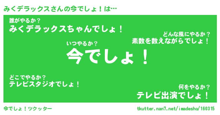| 胡散臭い通販商品みたいなあだ名 | 『必ず成功する霊験あらたかなお札…その名も「みくデラックス」』 |