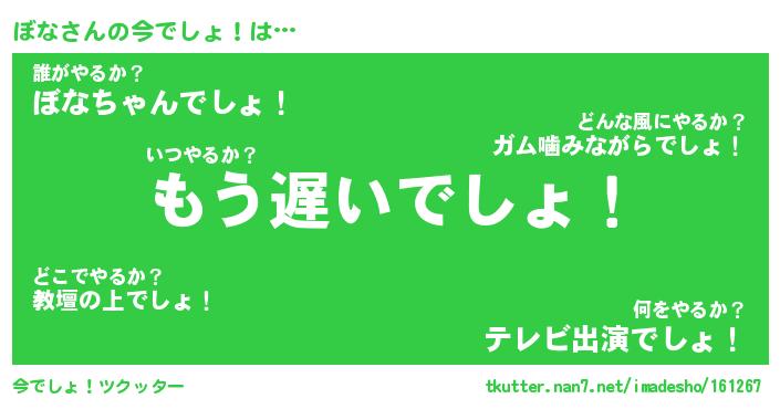 | ヘコむあだ名 | 『ぼなにゅー』『酢こんぶ』 |