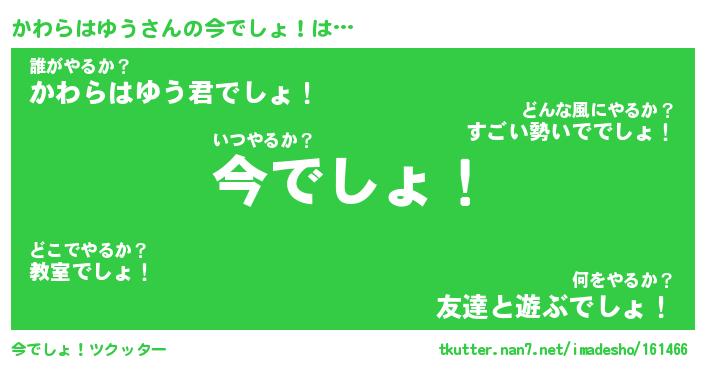 | ヒーロー風カッコイイあだ名 | 『スーパーカワラハユウ』『天弓騎士カワ』 |