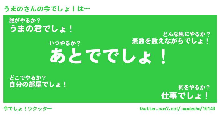 | 2回繰り返すあだ名 | 『うまうま』『ううまま』『いらいら』 |