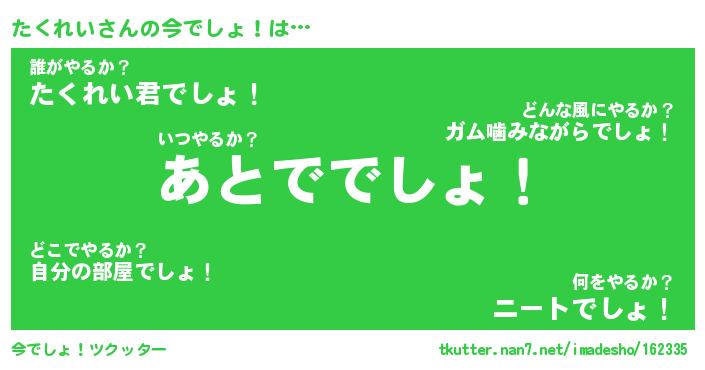 | 2回繰り返すあだ名 | 『たくたく』『たたくく』『うねうね』 |