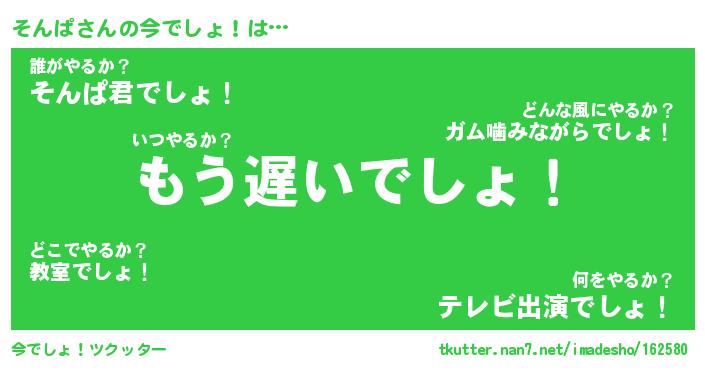 | ヒーロー風カッコイイあだ名 | 『スーパーソンパ』『ウルトラそんぱマン』 |