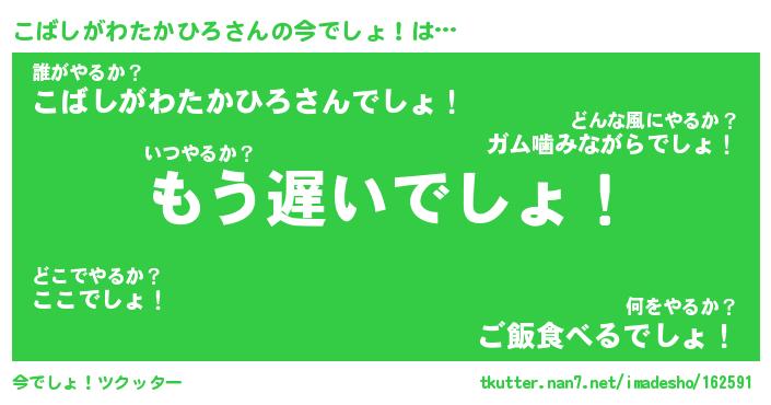 | 肩書あだ名 | 『こばしがわたかひろ御曹司』 |
