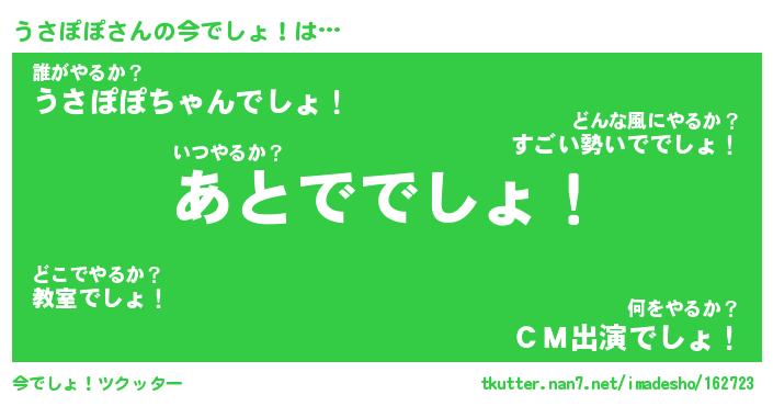 | 欧米人風あだ名 | 『マイケルうさぽぽ』『ウサインうさぽぽ』 |