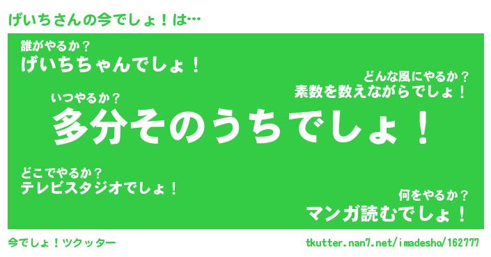 | 意味不明あだ名 | 『ペロリンげいち』『げいちフォーエバー』 |