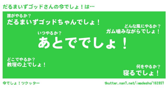 | 胡散臭い通販商品みたいなあだ名 | 『モテモテ間違いなし霊験あらたかなお札…その名も「だるまいずゴッド」』 |